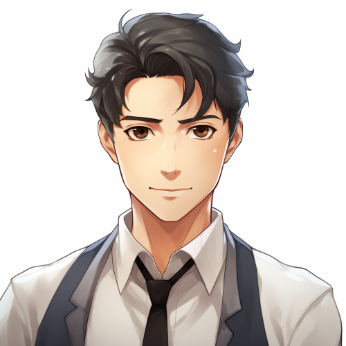 Men, teachers, short hair, black hair,square face,Anime teacher, upper body avatar, white background --v 5.2