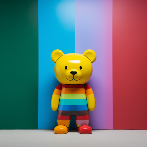5 coloured background, color dropping 5 layers 5 colour with a shape of a toy bear doll standing without face