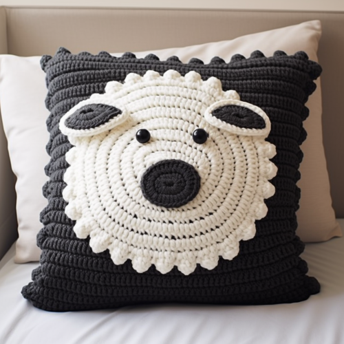 For a crochet pillow featuring a sheep design: Materials: Choose soft and textured yarn for the pillow. Use white or light-colored yarn for the main body of the pillow. Sheep Design: Crochet a cute sheep face with black yarn for the eyes and nose. Incorporate gray or black yarn for the sheep's woolly texture. Pillow Shape: Determine the size and shape of the pillow (square, rectangle, etc.). Finishing Touches: Add details like ears, legs, and a tail to complete the sheep design. Consider using additional colors for embellishments or accessories. Texture and Realism: Pay attention to the texture of the crochet stitches to enhance realism. Experiment with different stitch patterns for added visual interest. Photography: When taking pictures, ensure good lighting to highlight the details. Capture the pillow from different angles to showcase the entire design.
