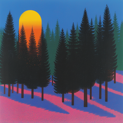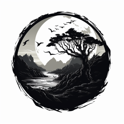 Black and White logo, ocean, shadow, coast, haunted, trees, spooky, intriguing, vector, frightening