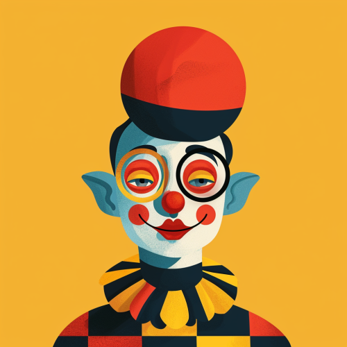 friendly clown, simple flat illustration --s 250 --v 6.0