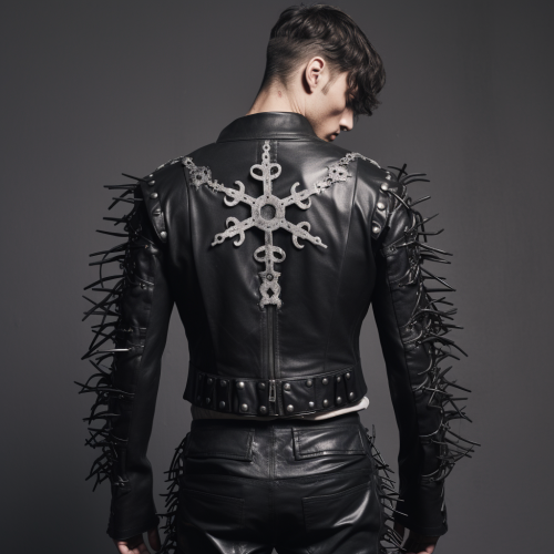 front and back image of jacket, mens black with brown shade biker leather jacket, amazon product, white background, ar 16:9