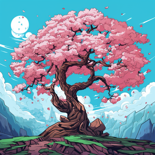 japanese ink, flat vector art illustration of a cherry blossom tree --ar 4:3 --v 6.0 --s 750 --style raw