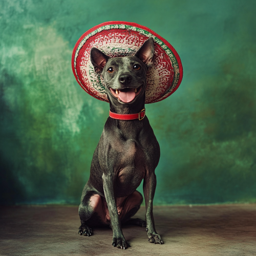 Mexican Independence Day Celebration with Xoloitzcuintle and Cat