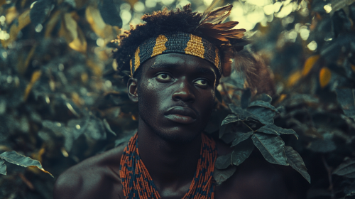 cinematic scene of an African a lush forest scene. This visual representation captures the essence of African mythology. This is an ultra-realistic photograph captured on high-resolution 35mm film. --ar 16:9