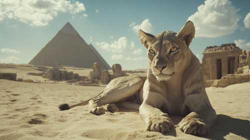 cinematic scene of the pyramids and sphynx in egypt. This visual representation captures the essence of African mythology. This is an ultra-realistic photograph captured on high-resolution 35mm film. --ar 16:9