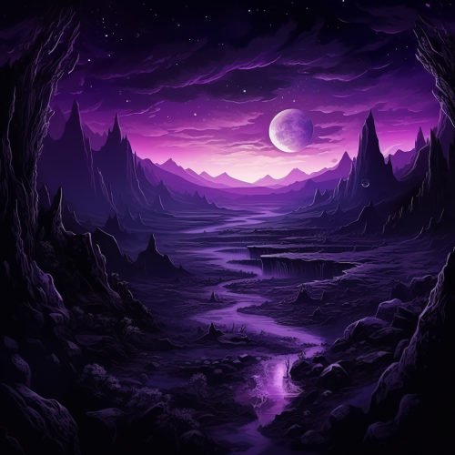 very dark purple bright alien landscape, 4k, handdrawn--ar 16:9