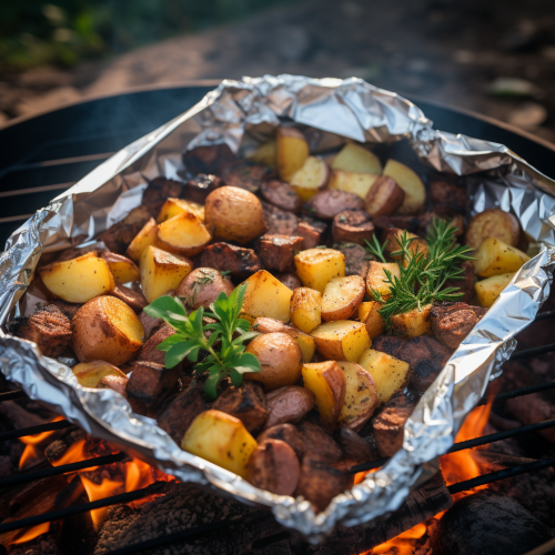 oldschool camping van with tent and cozy lights and travel chairs and grill near the lake --ar 16:9 --no people --s 250