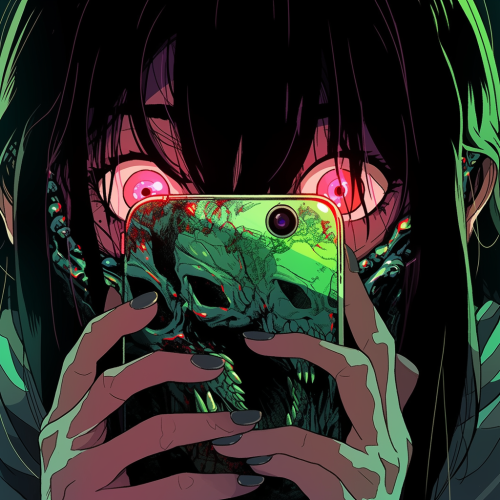 an humanoïde Android, very detailed illustration , Ultra-réalistic, 1990s VHS anime, in the style of Junji Ito, --niji