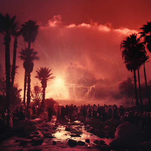 the fall of babylon in ad from 90s, in the style of movie still, sunset, phoenician art, associated press photo, mbole art, oversized objects, magic realism, background for concert performance, in the style of made of mist, grainy, trashcore, lit kid, carnivalcore, Polaroid, pictorialist, #film