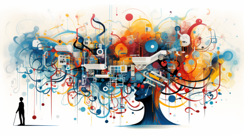 abstract creation with the following keywords: Creativity, Community, interdependence, Collective intelligence ,Connectivity, fun, Generate knowledge --ar 16:9