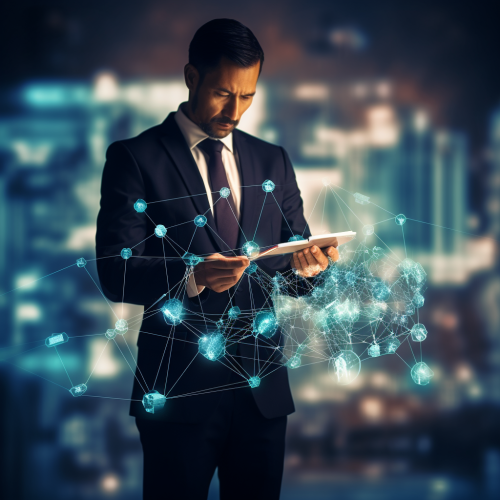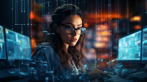 abstract banner image, data analytics, customer data lists, artificial intelligence, hyper realistic photography, detailed cinematic, 32k --ar 16:9