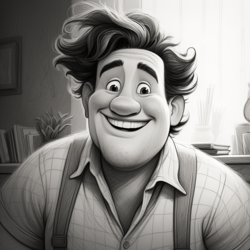 (Disney)(cartoon)(pencil) a Nice handsome chubby man with blong hair smiling