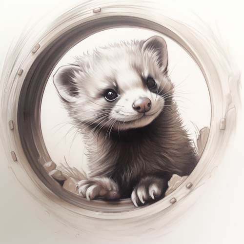 cute playful ferret drawing, mandy jurgens style, drwan inside a circle