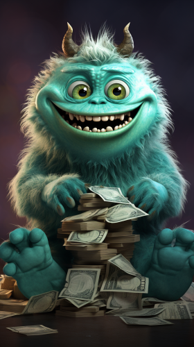 a dungeons and dragons monster that is a an angry leather wallet with coins for teeth and dollar bills for its tongue