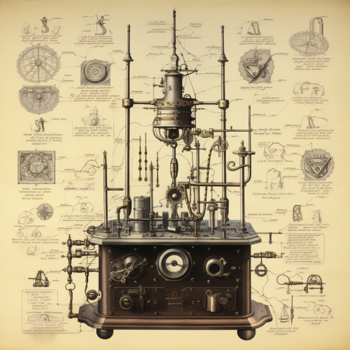 a schematic of an early radio device to contact the dead that has a central dial, nervous system, anatomy, technical drawing, early 1900s