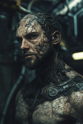cybernetic soldier,eerie,comic book style,concept art --ar 3:4 --v 5.2