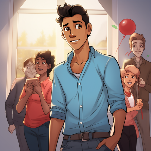 ashamed 45 year old man checks damage of car wreck. pixar style. digital art. colorful and eye catching.