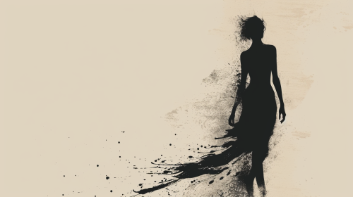 a minimal white poster simulating with an abstract painting the silhouette of an indian woman full body, inspired by Jordi Labanda style, fashion, abstract minimalism art, vector art, black, white and beige, international typographic style --ar 16:9 --v 6.0 --style raw