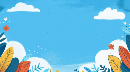 illustration of a blue sky with a few clouds, surrounded by an edge of European foliage --ar 16:9