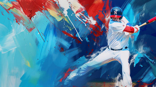 visual analytics , baseball batter , Brush Stroke Oil Paintings, ai innovation sprint, blue background --ar 16:9 --v 6.0 --style raw --stylize 8