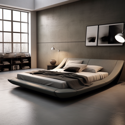 Photograph a minimalist small cabin interior bedroom with clean lines and a neutral color palette. The room should feature a simple platform bed, streamlined furniture, and large windows that fill the space with natural light. Subtle decorations like a single piece of modern art or a sleek hanging light fixture should complement the uncluttered space. The overall composition should be neat, organized, and airy, capturing the essence of minimalist living in a cabin setting. Ensure the image is sharp and detailed, highlighting the quality of materials and the openness of the design. Camera: DSLR - Canon EOS 5D Mark IV. Lens: Canon EF 24-70mm f/2.8L II USM. Composition: Wide shot, room-centered, horizontal orientation, balance between furniture and space. Film: Digital, high resolution, color profile sRGB. Camera settings: ISO 400, f/2.8, 1/60 sec. --ar 2:3 --v 6.1 --s 250