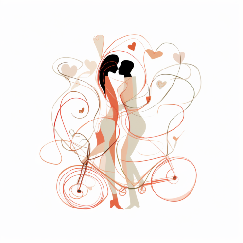 single line drawing of two lovers kissing in train, in the style of playful shapes, tumblewave, interactive artwork, rough-edged 2d animation, georg jensen, painted illustrations, naive charm