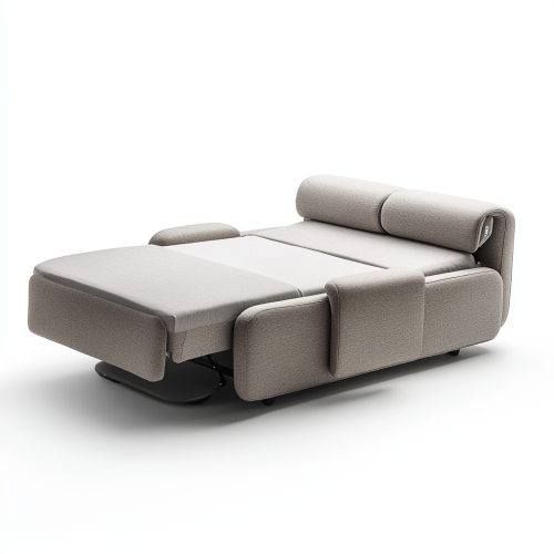 Corner view photo, A professional photo on a white background with no shadows. Gray sofa. The sofa is positioned centrally in the frame, showing its clean, minimalist design against the pure white background for a crisp, high-quality look. Nikon lens f/2.8, 45.7MP, ISO 25600, 1 / Shutter 8000 --ar 1:1 --v 6.0