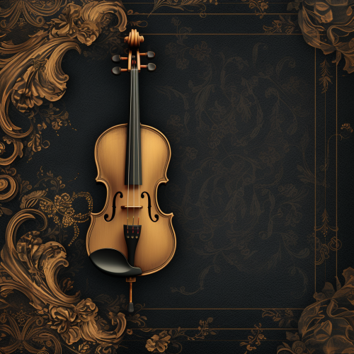 Blank background for the concert poster, baroque theme, pattern background, corner of a baroque violin appearing far right --v 5.2