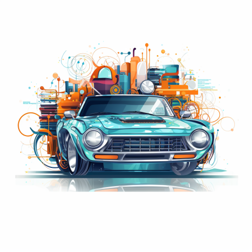Abstract illustration of a car with IT, programmer and admin theme white background