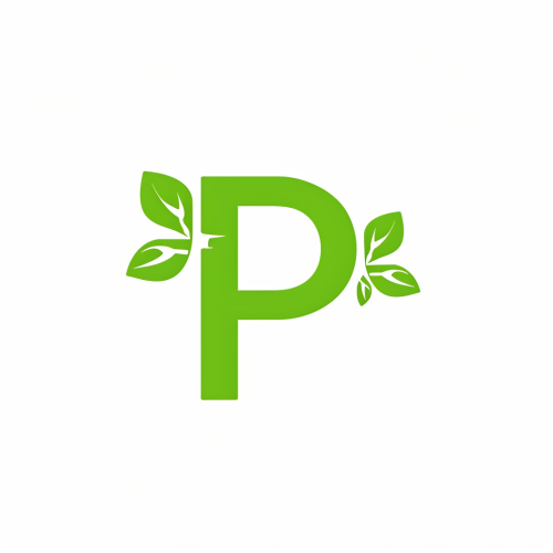 simplistic logo, one letter P represents an blackberries, one other letter P represents of mushroom