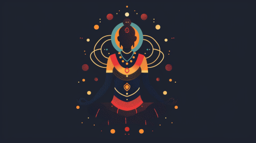 a flat character illustration, vector art, chakras, meditation, minimalistic, --ar 16:9