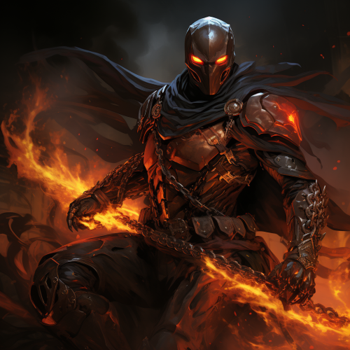 create a perfect mix between ghost rider and deadpool while holding swords --s 750