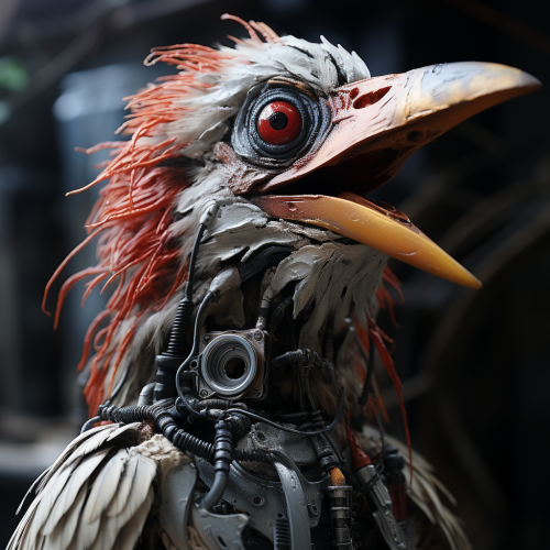 Generate an image of a bird on the verge of death, with its feathers ruffled and eyes half-closed, perched weakly on a barren branch against a somber, cloudy sky --chaos 5