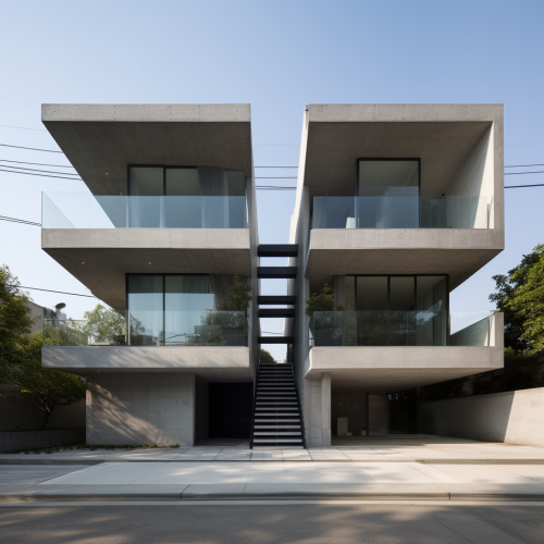 3 unit residential apartment building by Tadao Ando located in the Los Angeles Suburb --s 50 --style raw