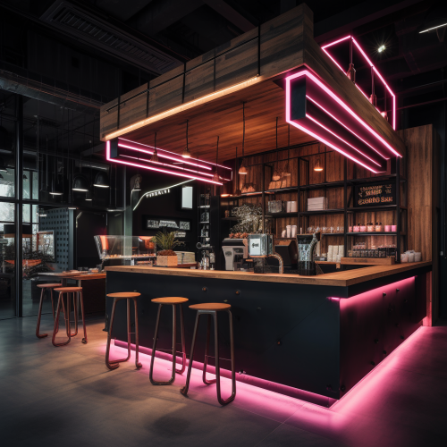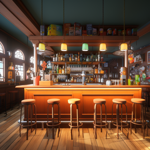 narrow anime coffee shop, bar, cozy, modern arch window, clean, anime style --ar 16:9