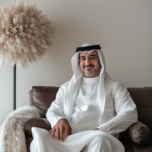 A cinematic scene set in AlUla, Saudi Arabia, celebrating Saudi National Day. The image features a young man and woman dressed in traditional Saudi attire. The man is wearing a pristine white thobe with a black bisht embroidered in gold, while the woman is adorned in a green abaya with intricate patterns symbolizing Saudi heritage. They stand side by side in the heart of AlUla, surrounded by the towering sandstone cliffs, ancient rock formations, and the famous Elephant Rock in the background. The golden hour light bathes the entire scene in a soft, warm glow, highlighting the stunning natural beauty of the landscape. The camera captures a wide angle, giving a sweeping view of the vast desert and monumental cliffs, while the couple remains the focal point. Their traditional clothing contrasts beautifully with the rugged, ancient terrain, and the cinematic composition creates a highly detailed, ultra-realistic visual. The use of a 50mm lens provides a balanced depth of field, blending the subjects and their breathtaking surroundings seamlessly