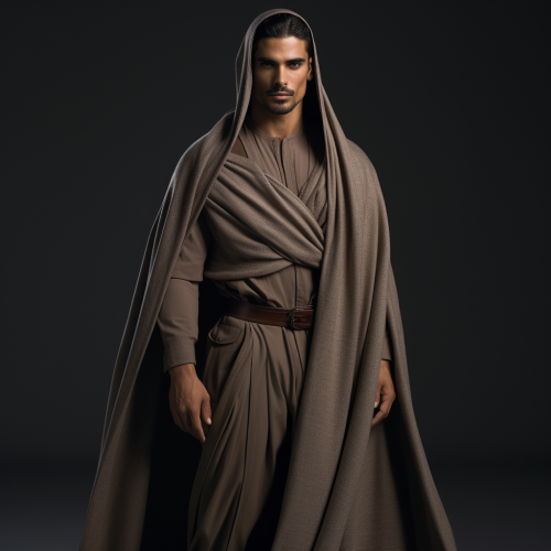 uturistic Riyadh cityscape with towering skyscrapers and a glowing planet in the background. A lone Saudi man wearing saudi costumes with wings on his back stands on a desert hill, gazing at the city. 8k resolution, hyperrealistic, cinematic, detailed.