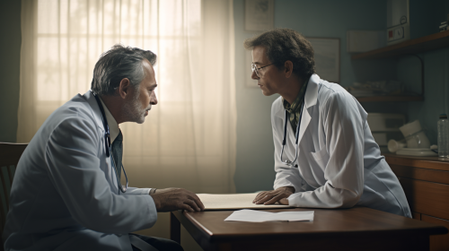 chilean medical doctor at the top clinic talking to a pacient, very realistic photo , sharp , real --ar 16:09
