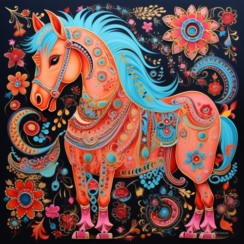 make the wall art for indian treditional cloths with horse. use modern art and flower and lots of color