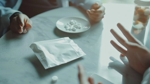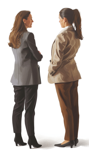 Detail of two business women talking on white background, fotographic render --ar 4:7 --v 6.0