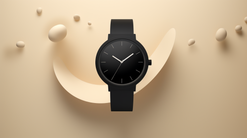 only black digital watch minimalist 3d realistic levitation cream color background --ar 16:9