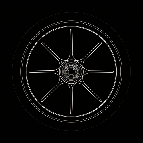 a art nouveau logo of a classic racing wheel, lines, minimalistic, icon, blackwork --v 6.0