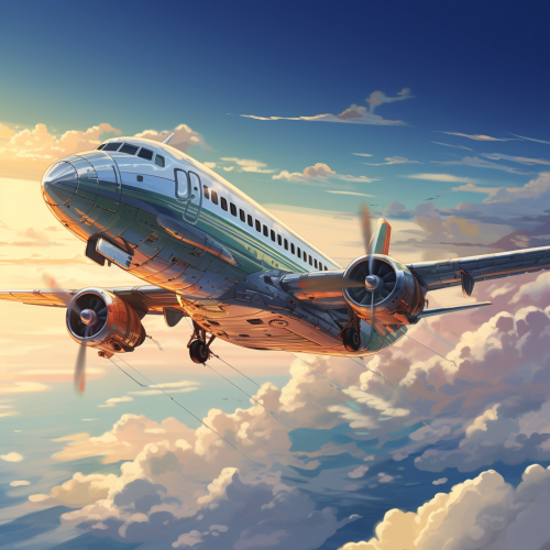 Lord Ganesha crafted from delicate green leaves, seated majestically on a flying airplane, intricate details, vibrant colors, whimsical atmosphere, surrounded by fluffy clouds, ethereal light --ar 1:1 --s 150 --no text