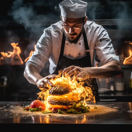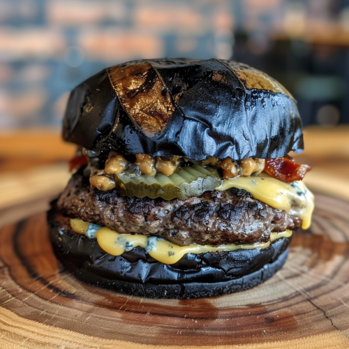 STYLE: Close-up Shot Top view | EMOTION: Tempting I SCENE: Smash Burger | TAGS: High-end food photography, clean composition, dramatic lighting, luxurious, elegant, mouth-watering, indulgent, gourmet | CAMERA: Nikon Z7 | FOCAL LENGTH: 50mm | SHOT TYPE: Close-up | COMPOSITION: Top view Centered | LIGHTING: Soft directional light | PRODUCTION: Food Stylist --ar 3:2