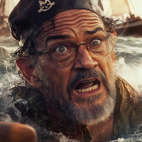 movie poster of captain phillips getting chased by pirates with text on poster saying captain phillips but make it a comedy and goofy. photo realistic, movie poster