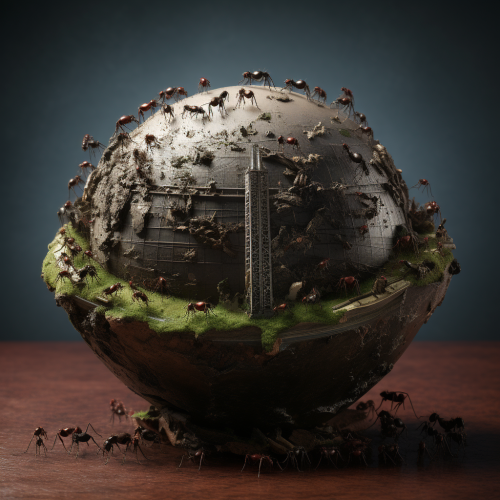 a world dominated by ants. They work, they eats, they live as humans. --ar 32:10