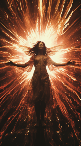 Angels sinning, beautiful female fallen angel, evil, 70s exploitation horror film style, stoner rock, trippy, --ar 9:16