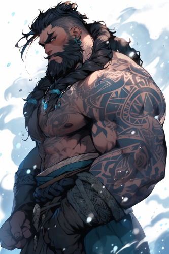 portrait of a muscular bold dwarf covered in tattoos by frank frazetta --ar 2:3