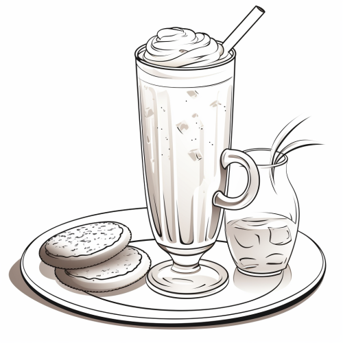 coloring page for kids and adults, eggnog with whipcream cinnamon in a glass, on a coaster, thick black lines, clean lines, well composed, well defined outline, white only, no shadows, no shading --no color--ar 85:110